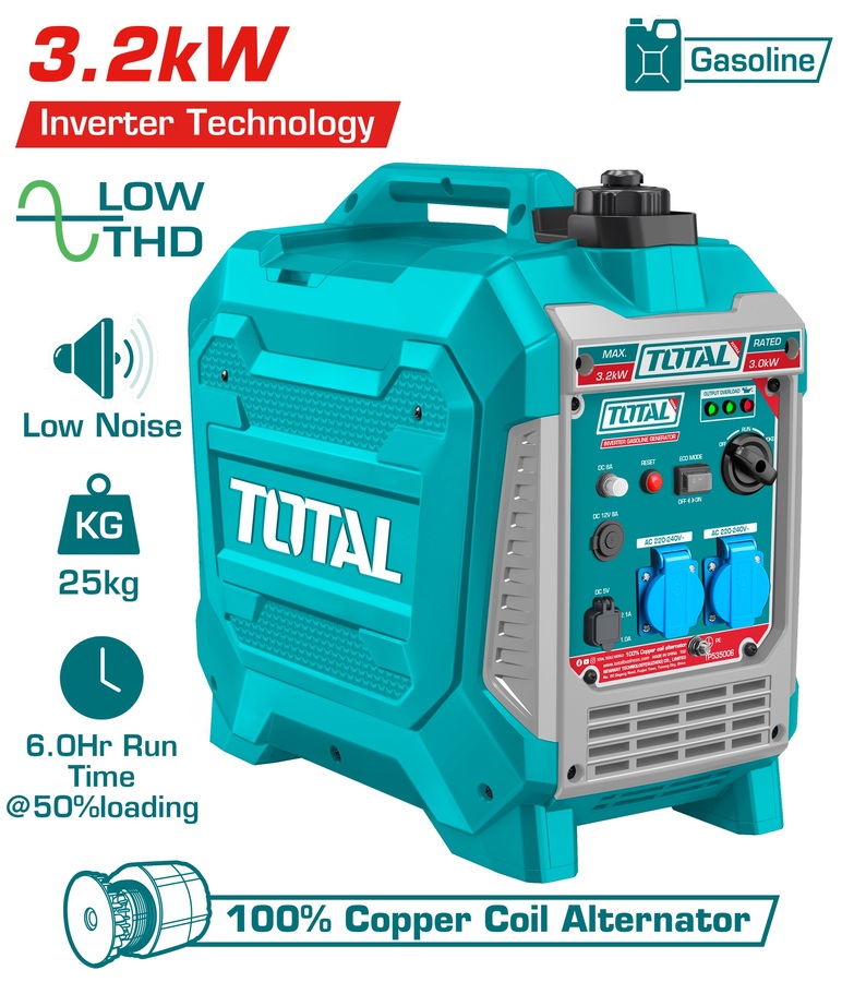 TOTAL ΕΠΑΓΓΕΛΜΑΤΙΚΗ ΗΛΕΚΤΡΟΓΕΝΝΗΤΡΙΑ ΒΕΝΖΙΝΗΣ INVERTER 3.200W (TP535006)