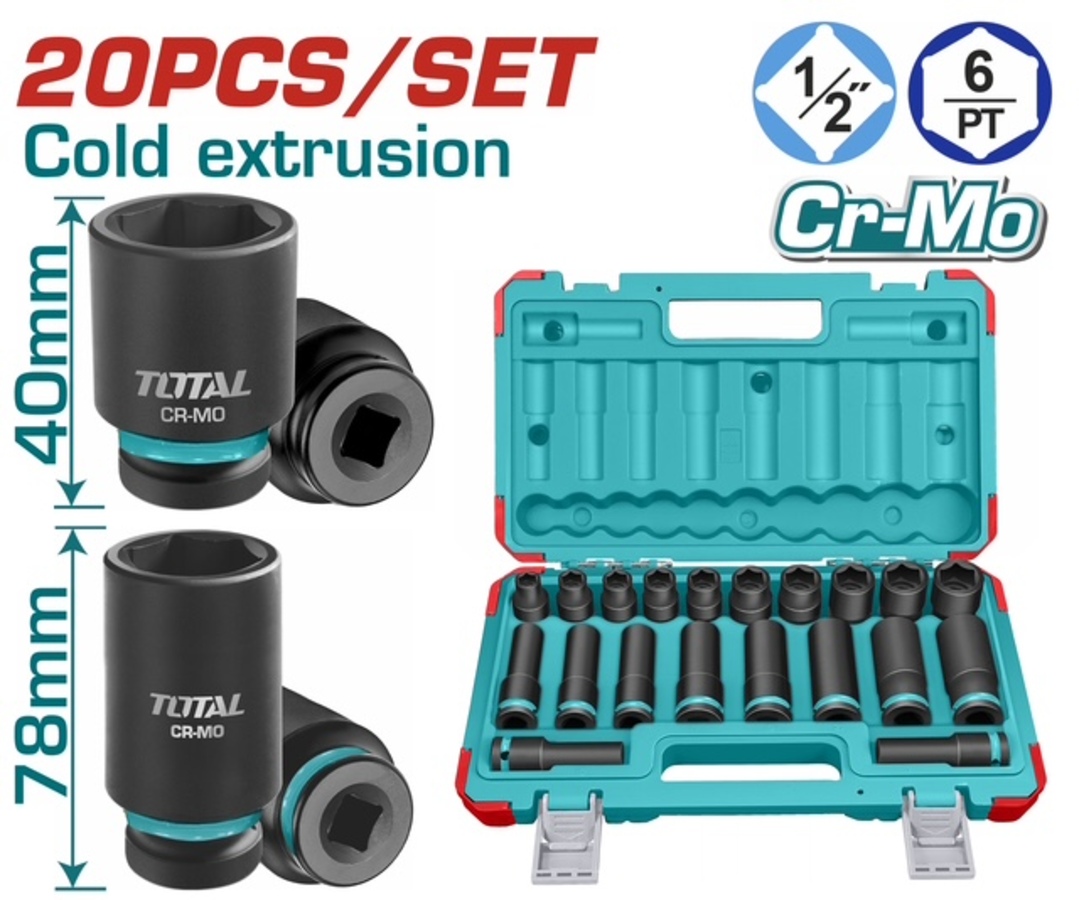 TOTAL ΕΠΑΓΓ. ΣΕΤ ΚΑΡΥΔΑΚΙΑ ΑΕΡΟΣ ΜΑΥΡΑ ΚΟΝΤΑ & ΜΑΚΡΙΑ ΕΞΑΓΩΝΑ 1/2″ 20 ΤΕΜ (THKISD12203L)